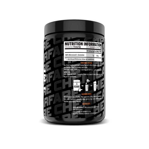 - 100% Pure Micronised Glutamine – Superior absorption and bioavailability.